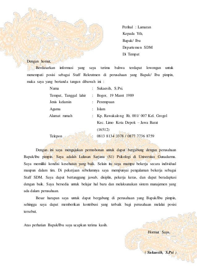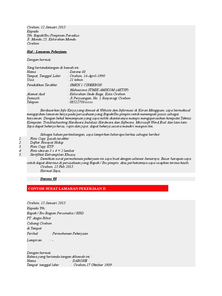 Contoh Surat Lamaran Kerja Resume Daftar Riwayat Hidupcvuntuk