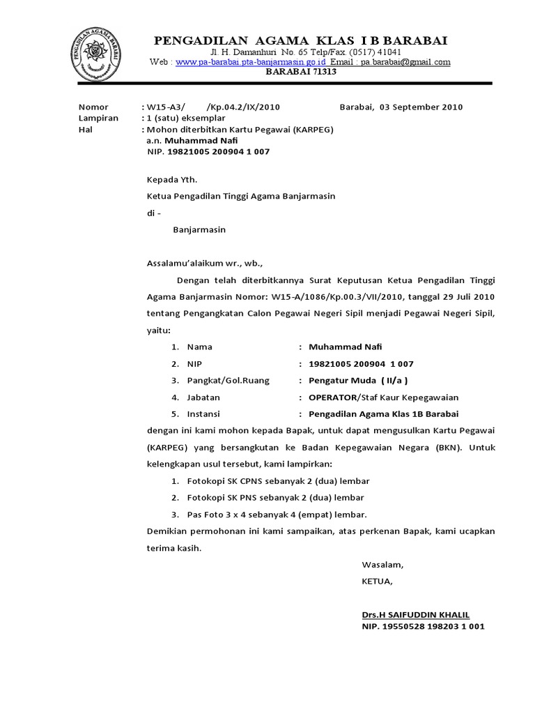 Pdf Perihal Permintaan Penggantian Karpeg Kepada Yth Kepala