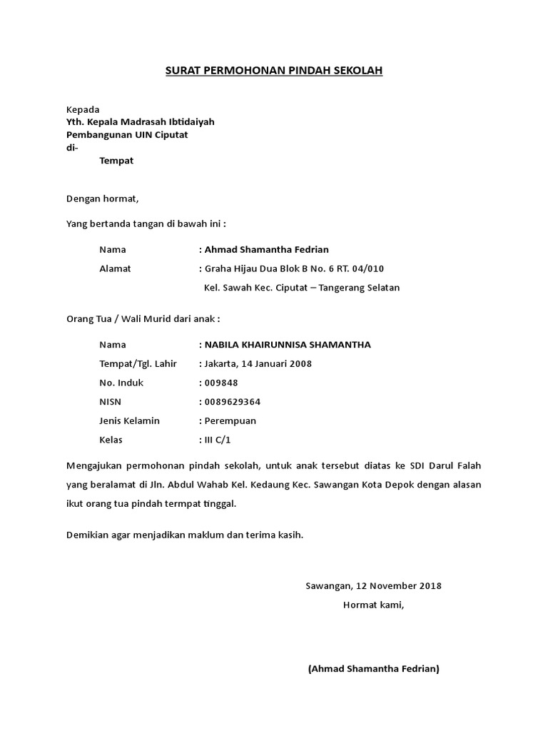 Contoh Surat Permohonan Pindah Sekolah Info Sekolah Kita