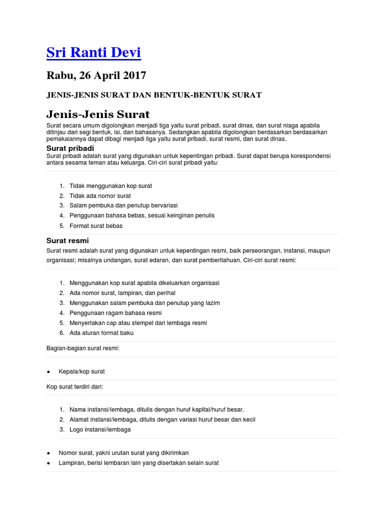 Menelaah Struktur Dan Bahasa Surat Pribadi Dan Surat Dinas Mikirbae