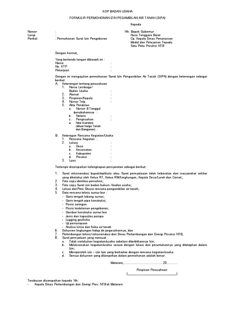 Pdf Surat Izin Pengambilan Air Bawah Tanah Sipa Persyaratan
