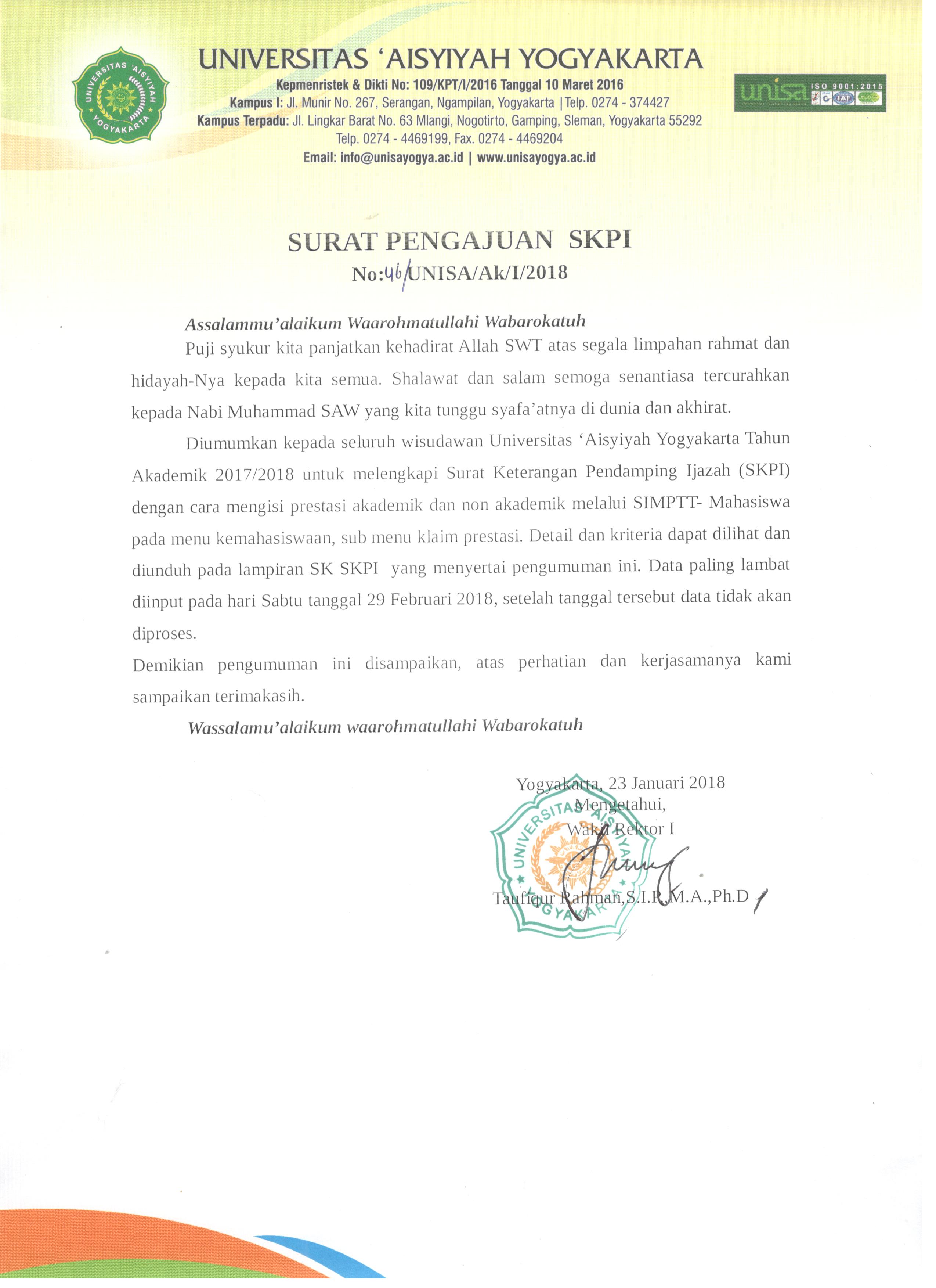 10312014 2 definisi dan pengertian skpi surat keterangan pendamping ijazah skpi atau diploma supplement adalah surat pernyataan resmi yang dikeluarkan oleh perguruan tinggi. Wb untuk kelengkapan administrasi dimohon untuk mahasiswa program studi pendidikan matematika segera mengisi surat keterangan pendamping ijasah skpi dan segera di kumpulakn di tu program studi matematika atau ke dosen pa masing masing dalam bentuk file word dan pdf. Surat keterangan pendamping ijazah skpi merupakan amanat peraturan menteri pendidikan dan kebudayaan permendikbud nomor 81 tahun 2014 tentang ijazah sertifikat kompetensi dan sertifikat profesi pendidikan tinggi.