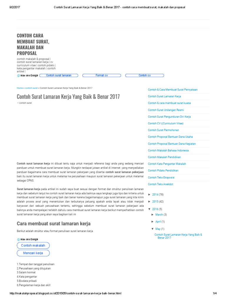 Contoh Surat Lamaran Kerja Yang Baik Benar 2017 Contoh Cara