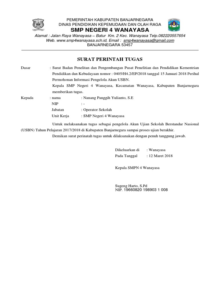 18 Contoh Surat Tugas Karyawan Guru Siswa Pns Perusahaan