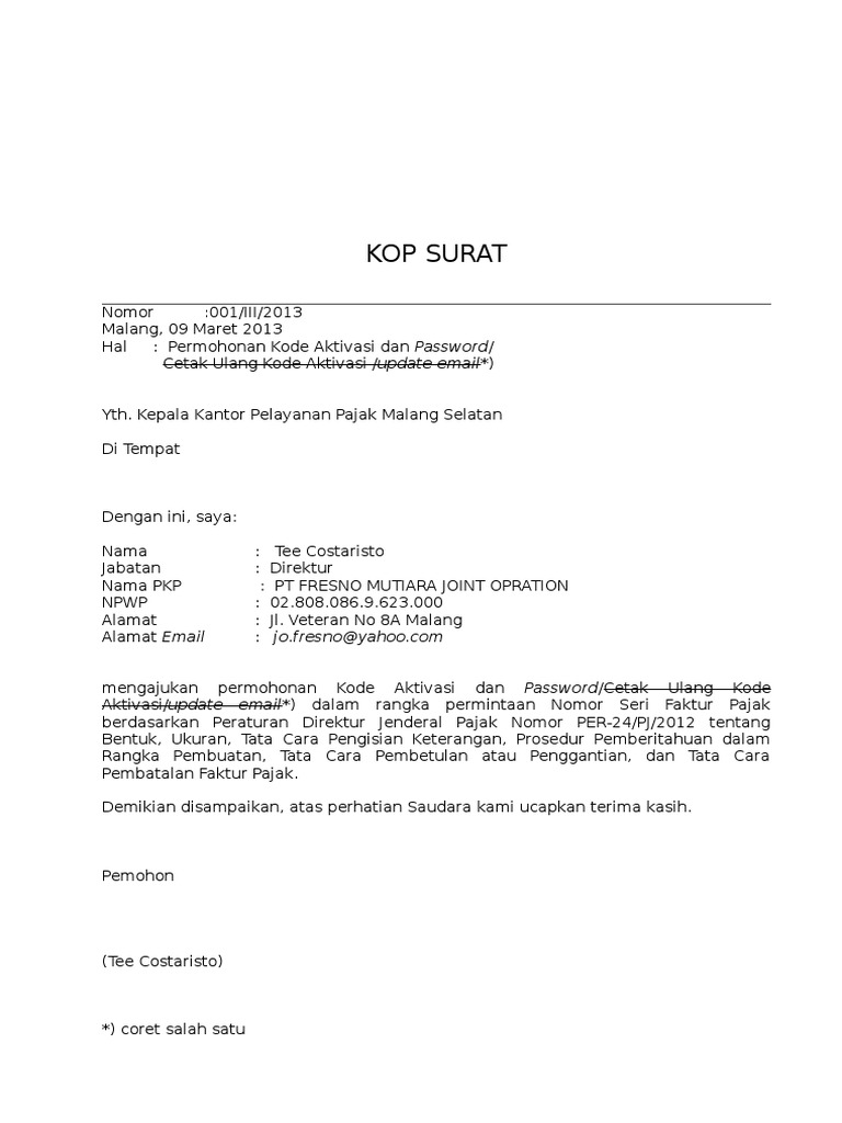 Jika ada sedang mencari Surat Permohonan Kode Aktivasi Dan Password Word.