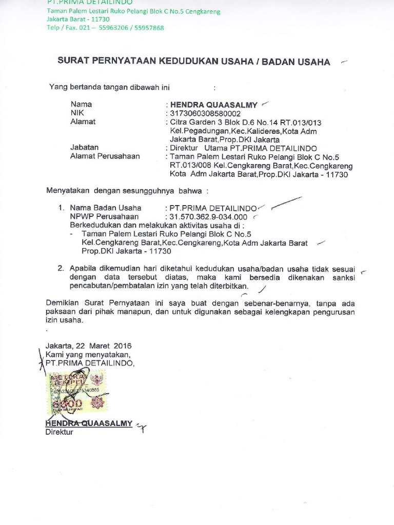 Surat Pernyataan Dari Pemohon Tentang Lokasi Usaha Perusahaan