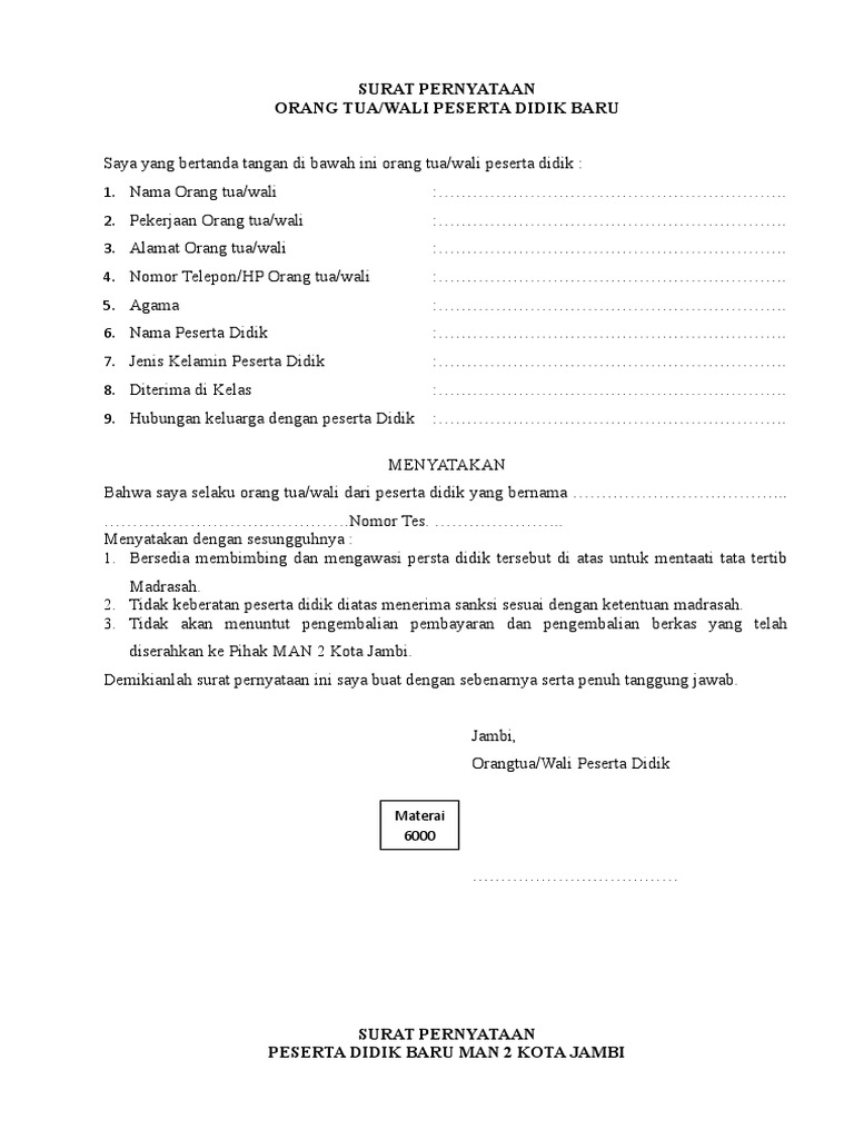 Surat Pernyataan Calon Peserta Didik Barudoc Surat Pernyataan