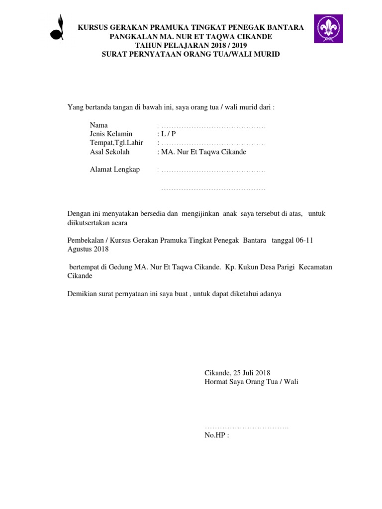 Contoh Surat Pernyataan Orang Tua Suratsuratxyz