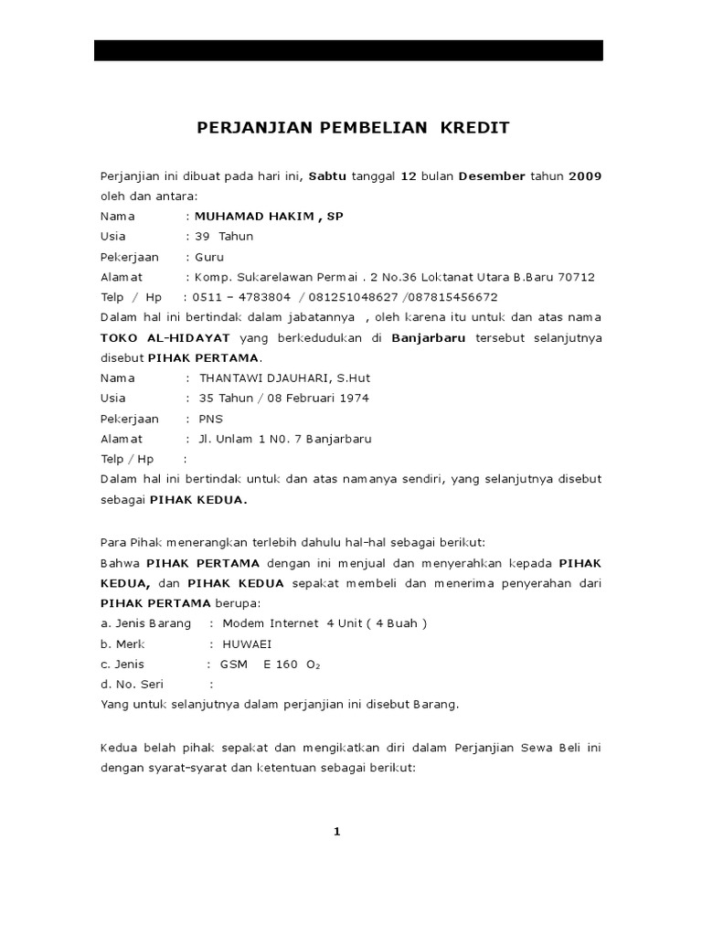 Contoh Surat Perjanjian Jual Beli Barang Elektronik Kredit