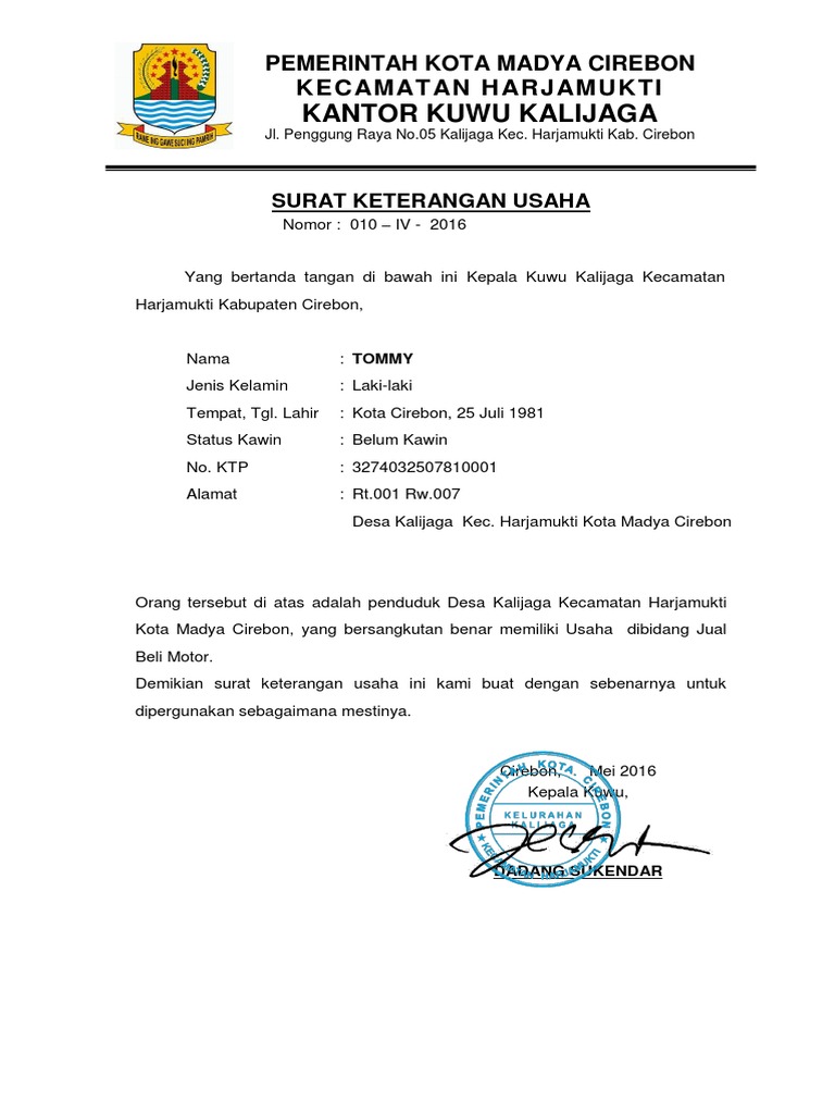 Contoh Surat Keterangan Usaha Sku Terlengkap Contoh Surat