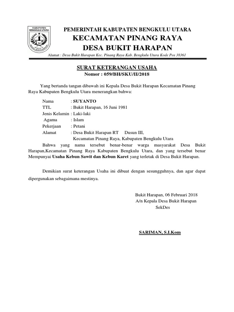 Inilah rekomendasi tentang Contoh Surat Keterangan Usaha Sku.