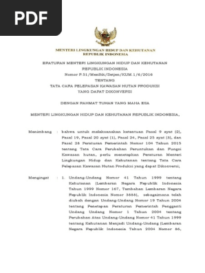 P51 Thn 2016 Ttg Tata Cara Pelepasan Kawasan Hutan Produksi Yang