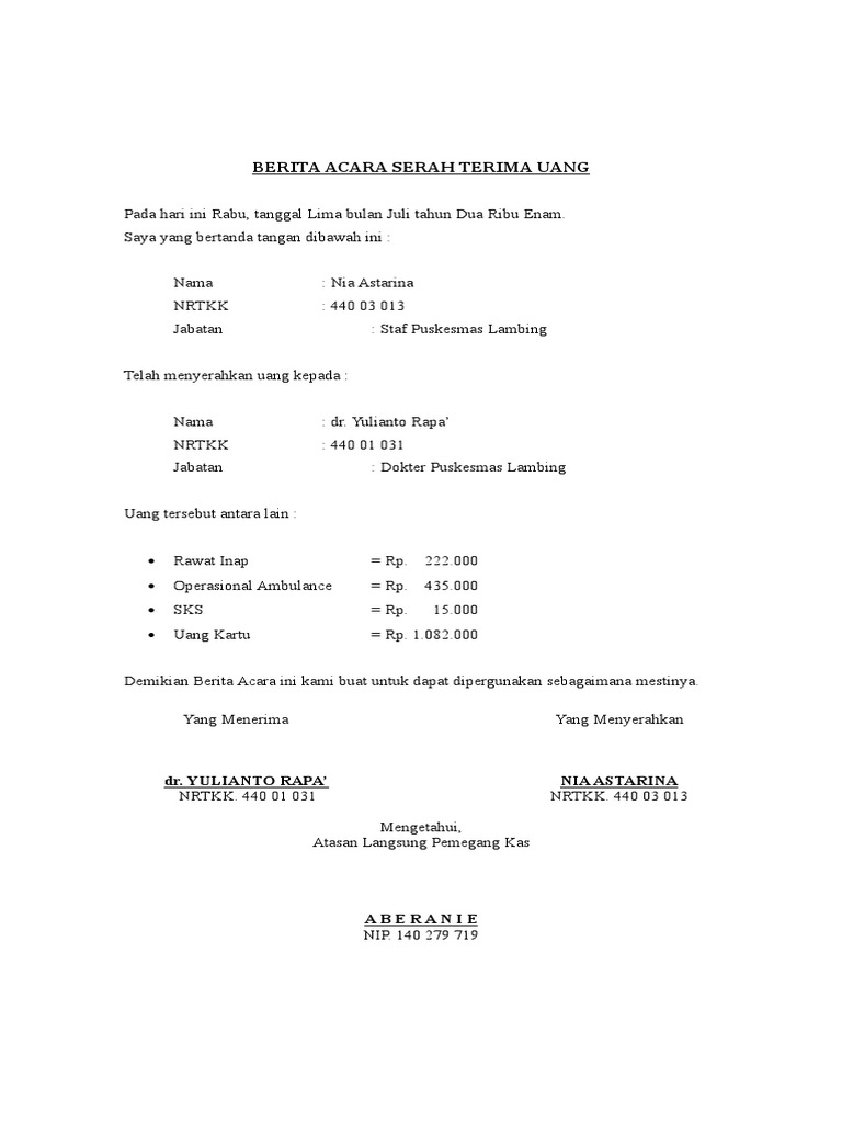 Berita Acara Serah Terima Uang