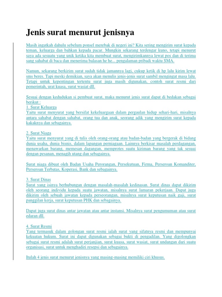Berbagai Jenis Surat Dan Contohnya Satiya Paru
