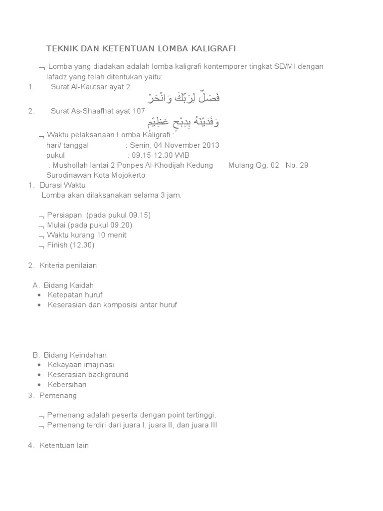Teknik Dan Ketentuan Lomba Kaligrafi