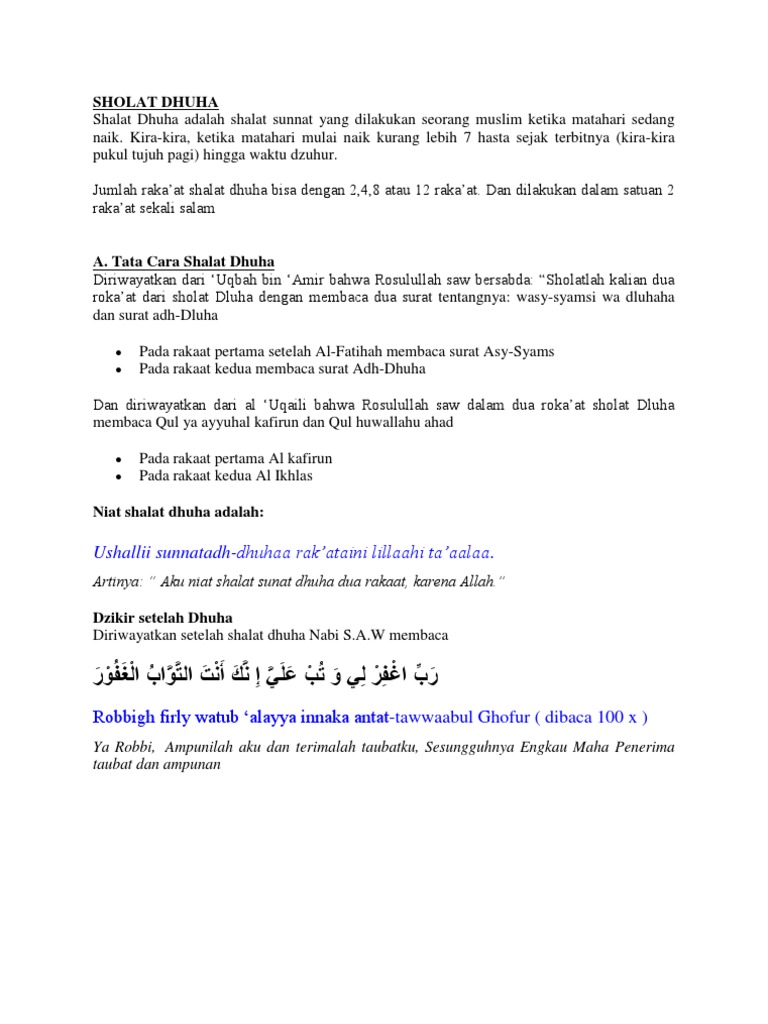 Bacaan Dzikir Dan Doa Sholat Dhuha Sesuai Sunnah Rasulullah Saw