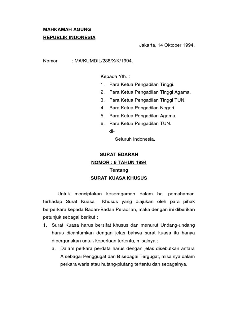Dibawah ini adalah informasi Surat Edaran Mahkamah Agung Tentang Surat Kuasa.