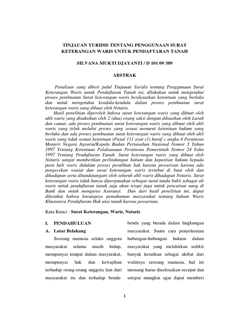 Oleh karena itu bagi anda yang belum mempunyai surat ini untuk segera bisa mengurusnya ke pihak yang berwenang. Surat ini punya kekuatan hukum sebab harus melalui proses persetujuan pejabat pemerintah setempat misalnya dari kelurahan dan kecamatan atau jasa pejabat pembuat akta tanah. Anda juga bisa mengurus dan mendapatkan contoh surat keterangan ahli waris dari lurahkepala desa dalam bentuk kertas biasa atau file doc mentar dimana tentunya juga biasanya akan berisikan.