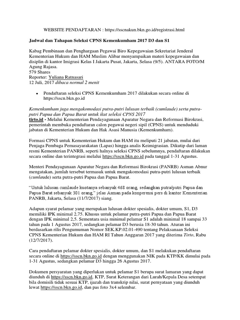 Cara Daftar Cpns Kemenkumham 2017 Lifestyle Fimelacom