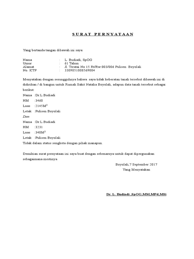 Doc Contoh Surat Pernyataan Ahli Waris Deef Kazt Academiaedu