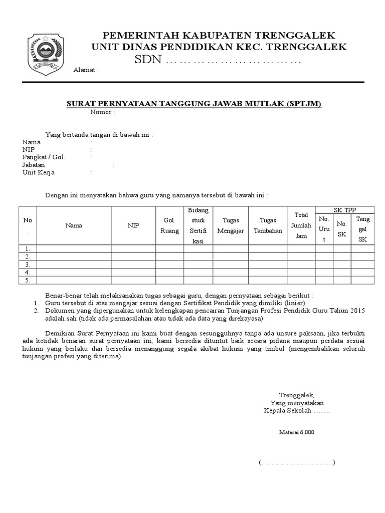 Surat Pernyataan Tanggung Jawab Mutlak Tk Al Amin