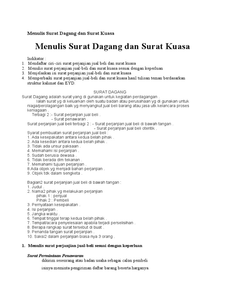 B Indonesia Kd 42 Menulis Surat Dagang Kuasa