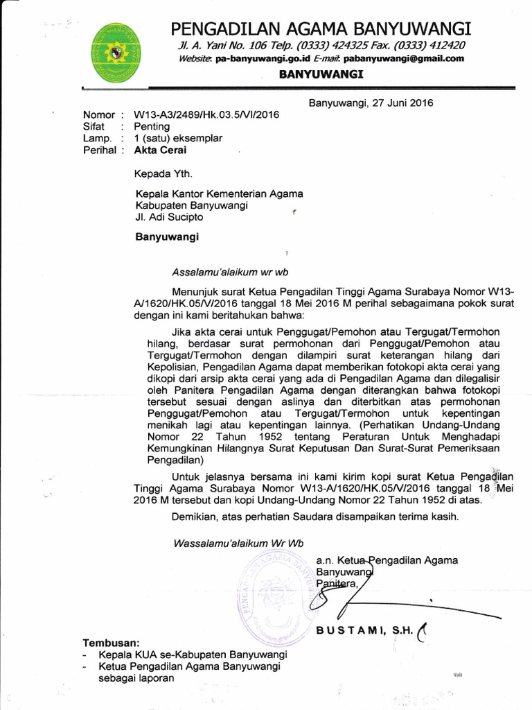 Penjelasan Pengganti Akta Cerai Yang Hilang
