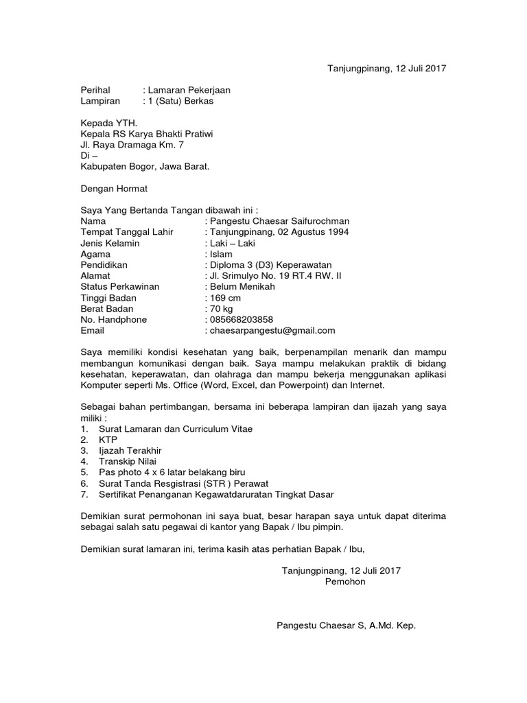 Surat Lamaran Kerja Yang Baik Dan Contohnya 2019 Ilmu Bahasa