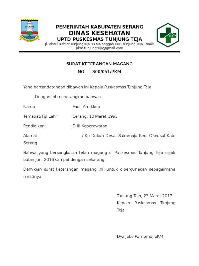 Contoh Surat Lamaran Magang Di Puskesmas Contoh Surat