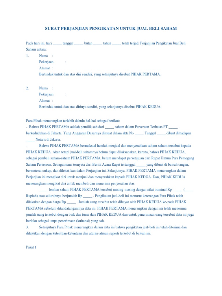 Surat Perjanjian Pengikatan Untuk Jual Beli Saham