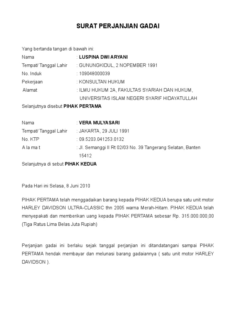 Contoh Surat Hutang Piutang Antar Pribadi Dengan Jaminan