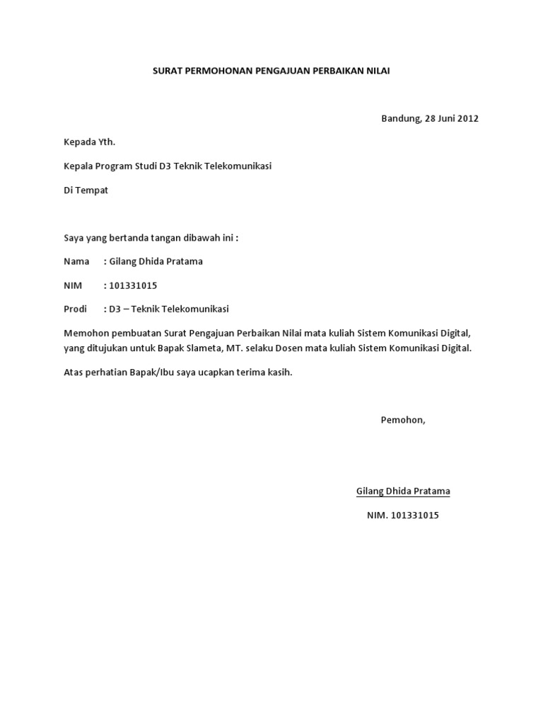 Surat Permohonan Perbaikan Nilai