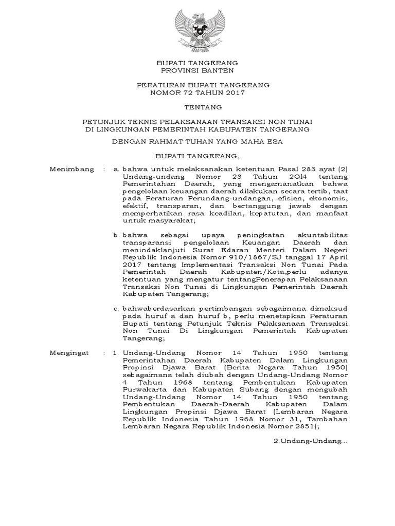 Transaksi Non Tunai Arahan Kepala Badan Pengelolaan Keuangan Dan