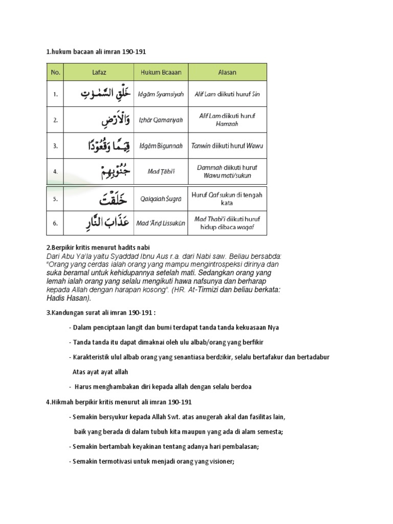 Hukum Tajwid Surat Al Imran Ayat 190 191 Lengkap Beserta