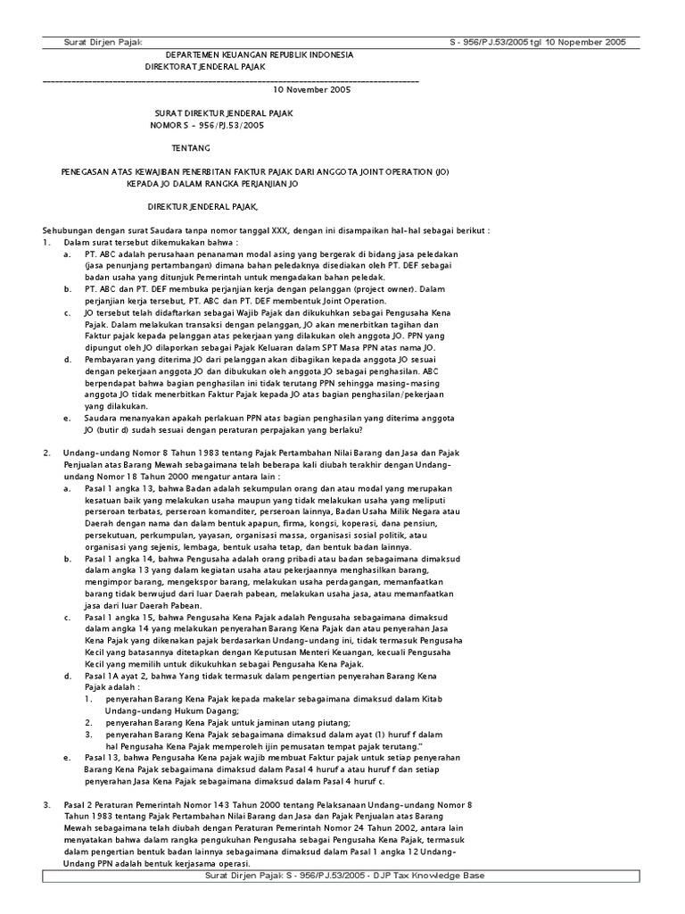 Surat Direktur Jenderal Pajak Nomor S 956pj532005