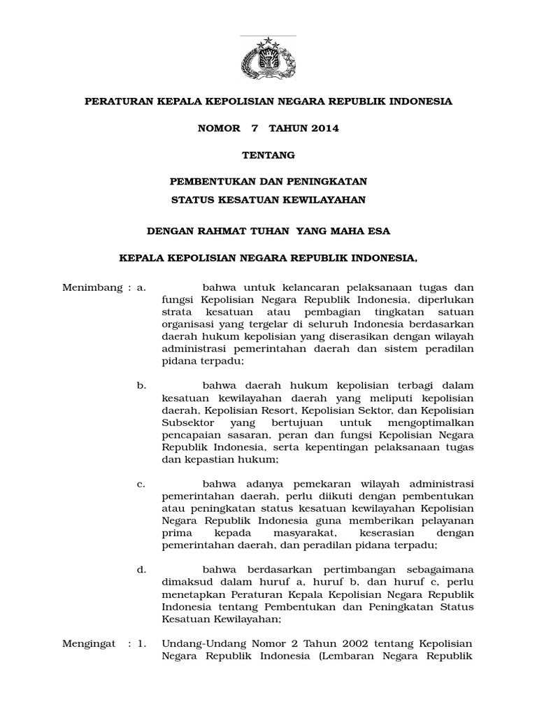 Perkap No 7 Th 2014 Ttg Pembentukan Peningkatan Satwil