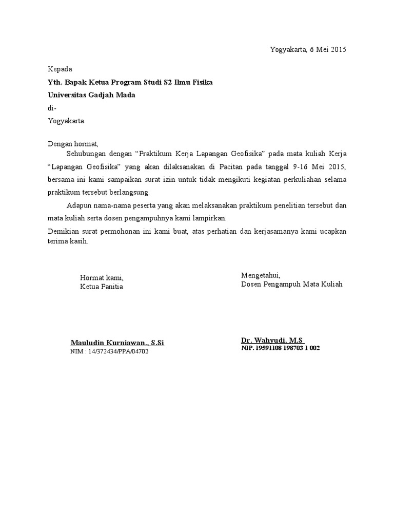 Yha walaupun hal ini masi bergantung pada kebaikan dosen pengasuh mata kuliah tersebut yha. Contoh surat izin tidak masuk kuliah contoh surat izin kuliah seharusnya wajib dimiliki oleh tiap mahasiswa. Bermaksud memohon izin untuk tidak mengikuti praktikum elektronika ii pada hari tanggal pukul.