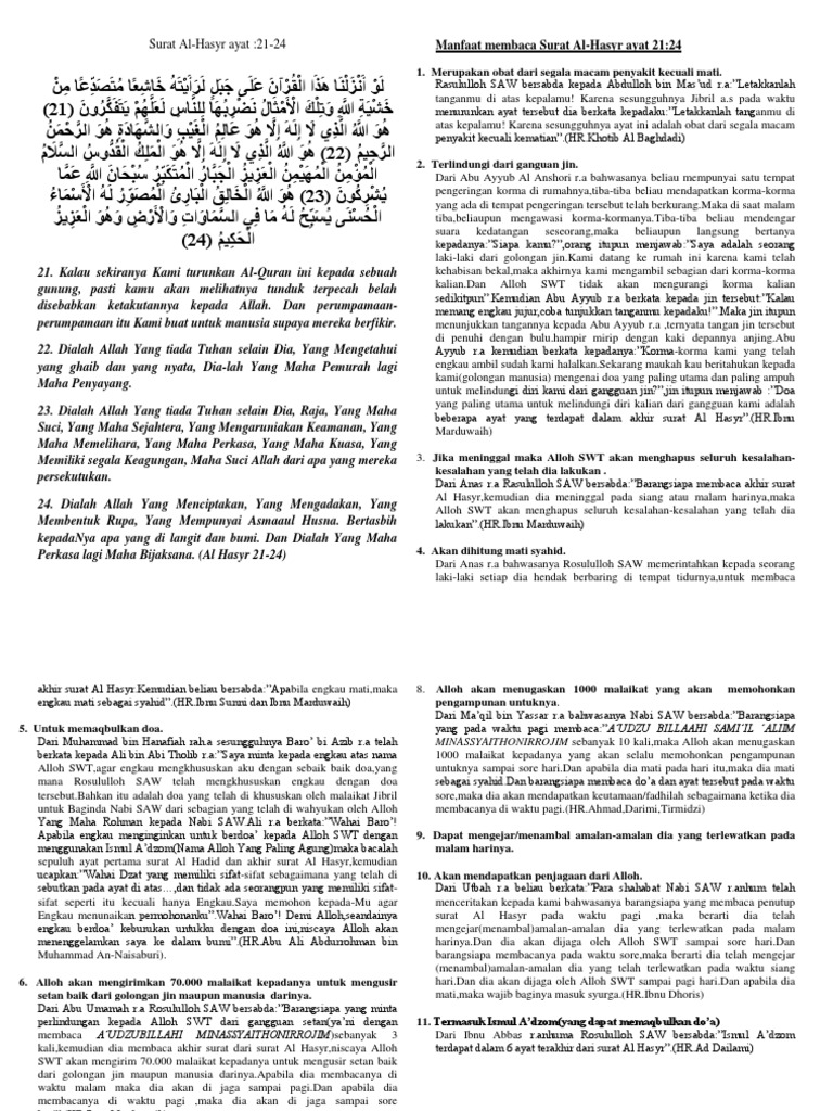 8 Khasiat Dan Fadhilah Dari Surat Al Hasyr Ayat 21 24