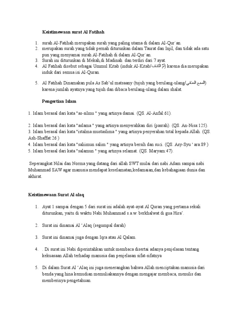 Isi Kandungan Surat Al Fatihah Pendidikan Sekolah Dasar