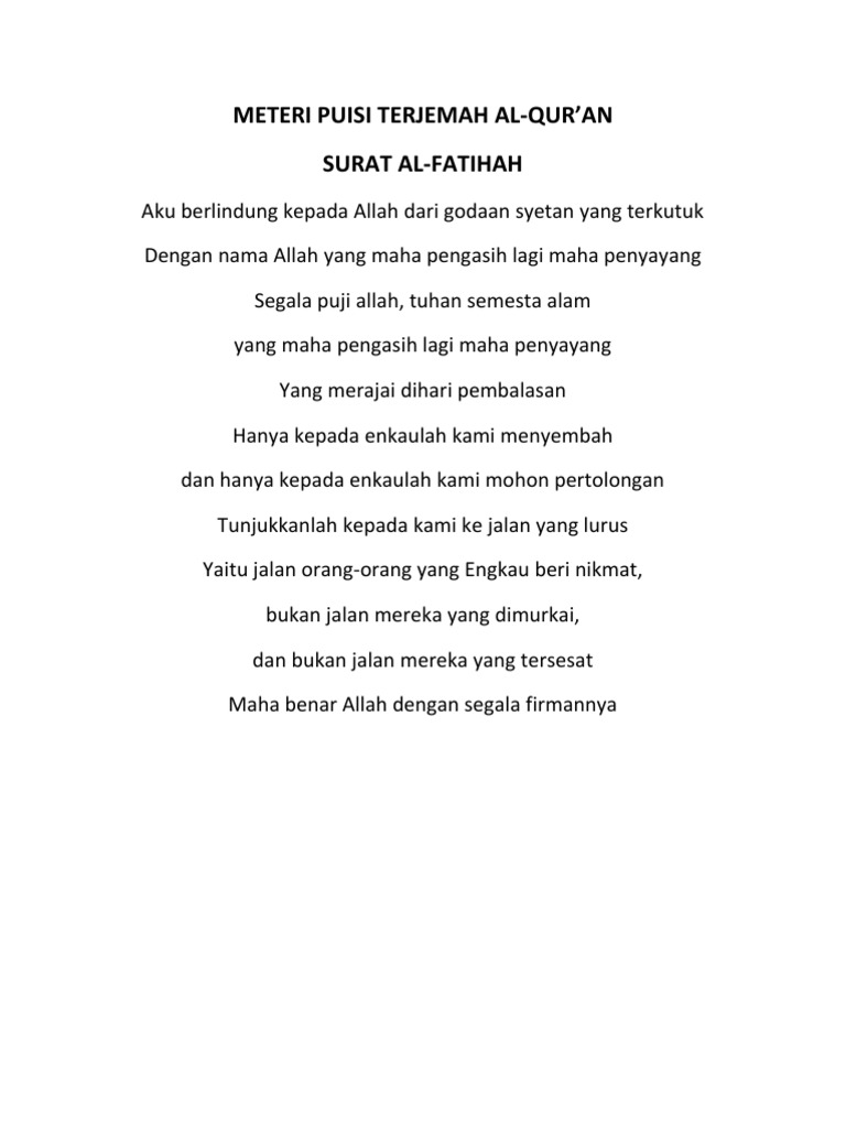 Terjemahan Surat Al Fatihah Terjemahan Surat Al Fatihah Surat Al