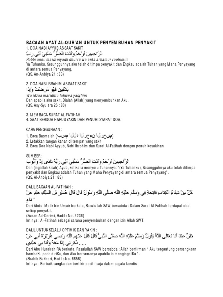 Bacaan Ayat Al Quran Untuk Penyembuhan Penyakit