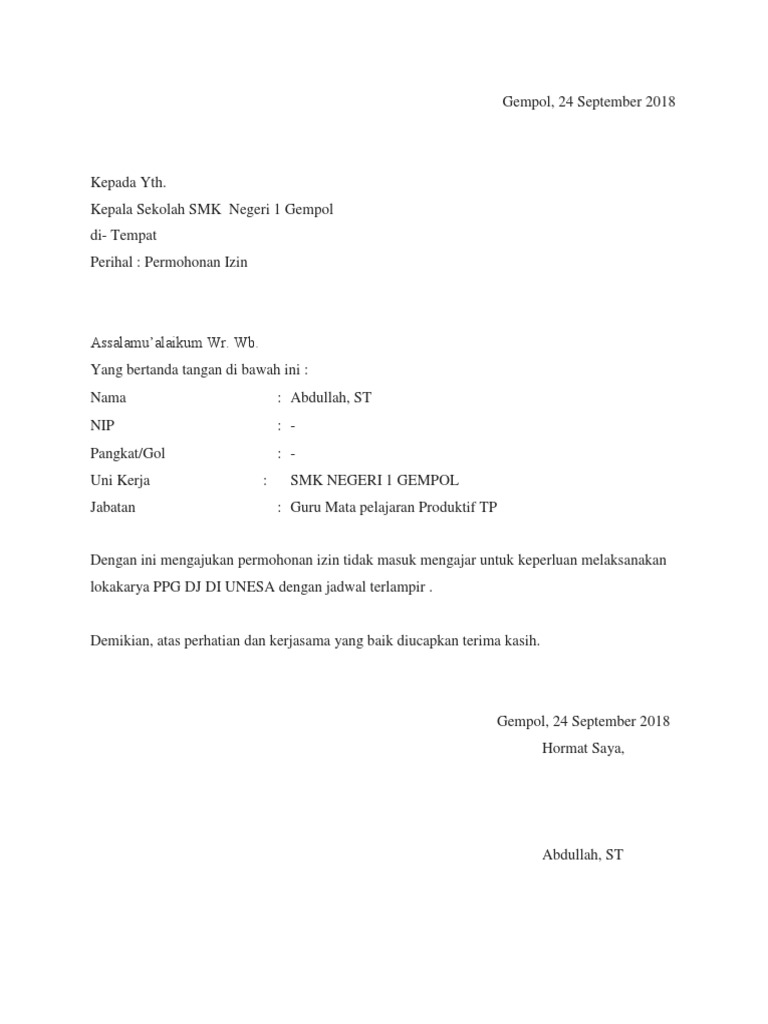 Contoh Surat Izin Guru Tidak Masuk Sekolah Format Word Info Gtk