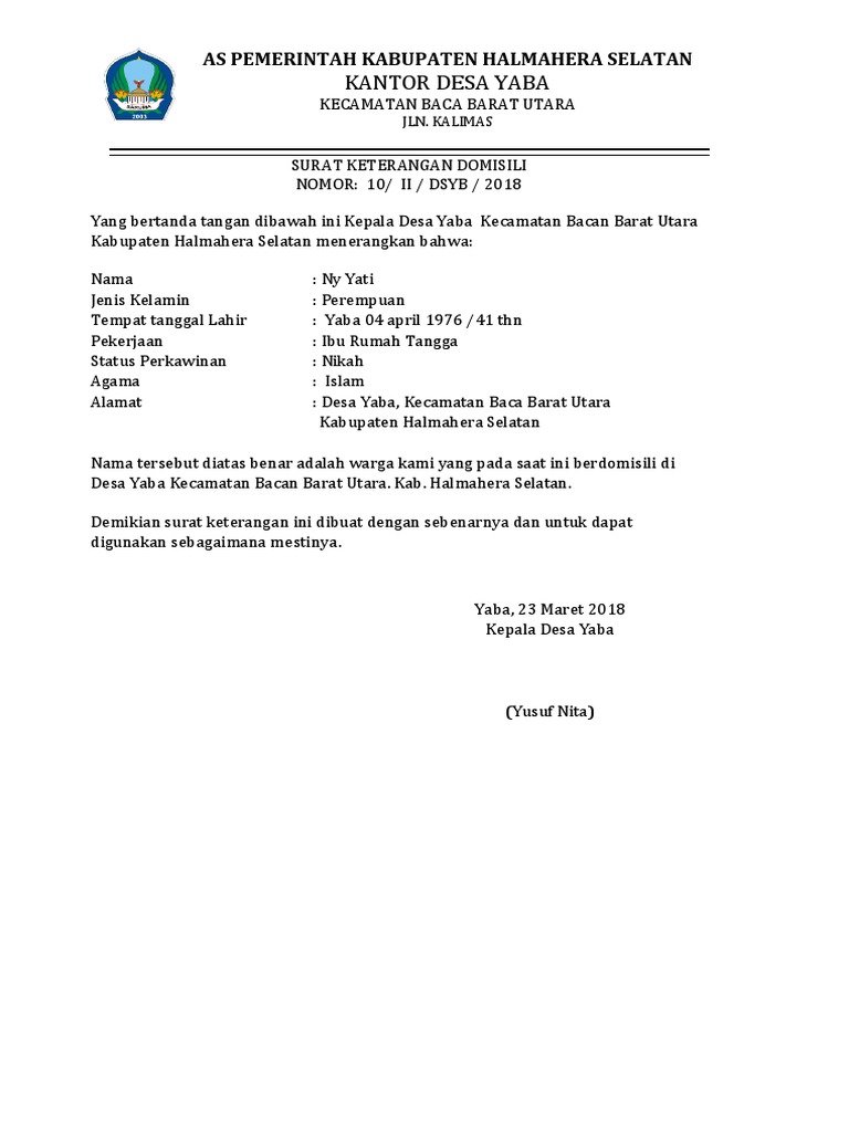 Informasi mengenai Surat Keterangan Domisili Dari Kepala Desa Doc.