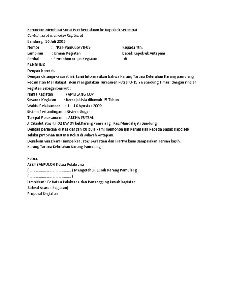 Temukan informasi lengkap tentang Surat Permohonan Izin Kegiatan Ke Polsek.