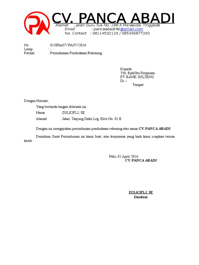 Contoh Permohonan Pembukaan Rekening Bank Doc Document