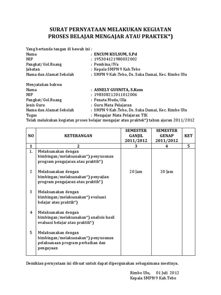 Contoh Format Surat Pernyataan Beban Mengajar 24 Jam Secercah Ilmu