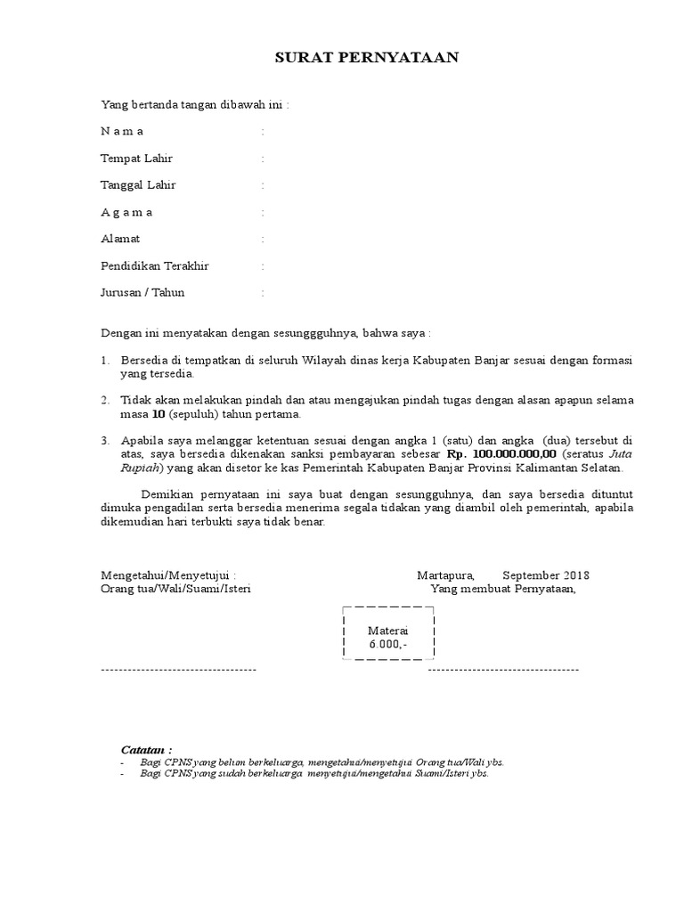 Surat Pernyataan Cpns 2019 Info Pns Dan Lowongan Kerja