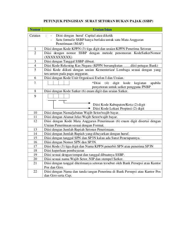 Petunjuk pengisian surat setoran bukan pajak ssbp nomor uraian isian catatan. Form ssbp asli dapat anda dapatkan di dinas terkait.