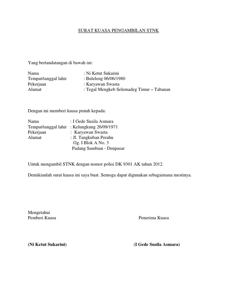 Contoh Surat Kuasa Kendaraan Bermotor Detil Gambar Online