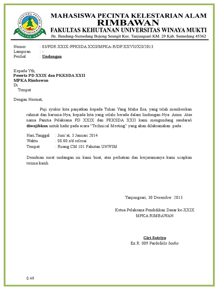 23 Contoh Surat Undangan Resmi Tidak Resmi Acara Rapat Dan Lainnya